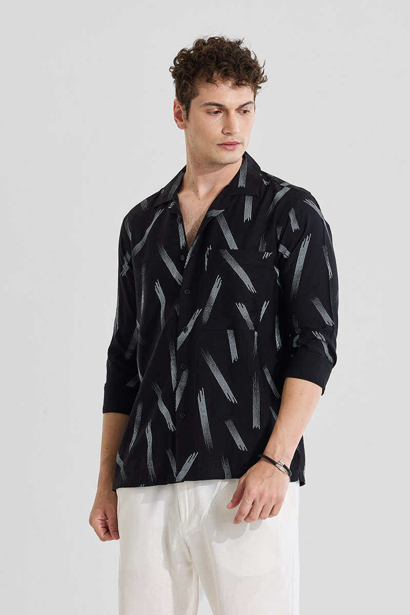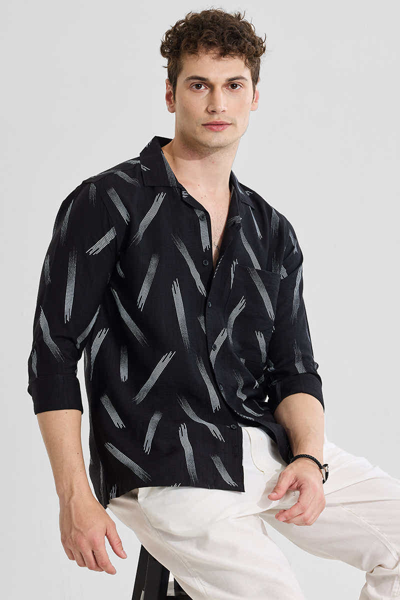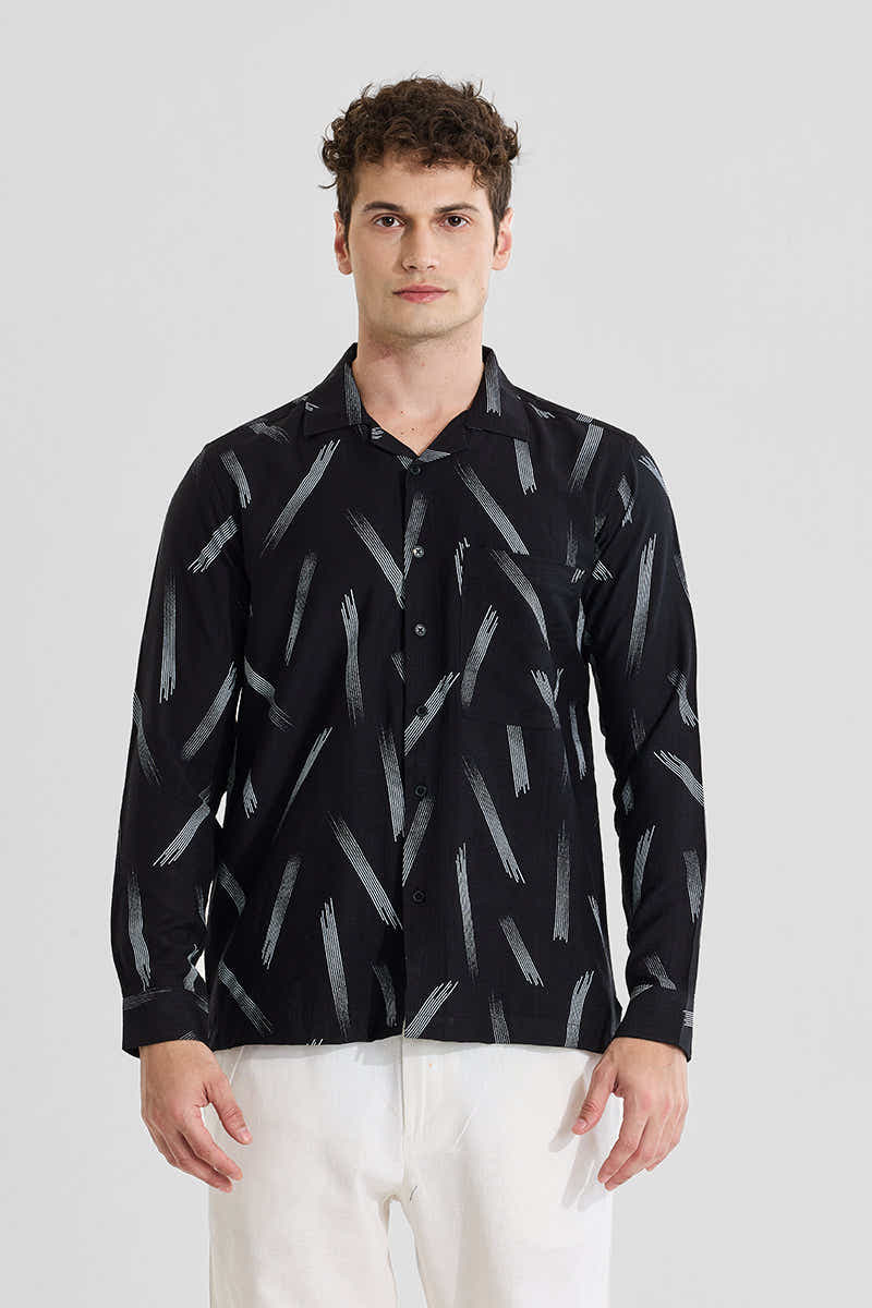 Black Abstract Regular Fit Shirt
