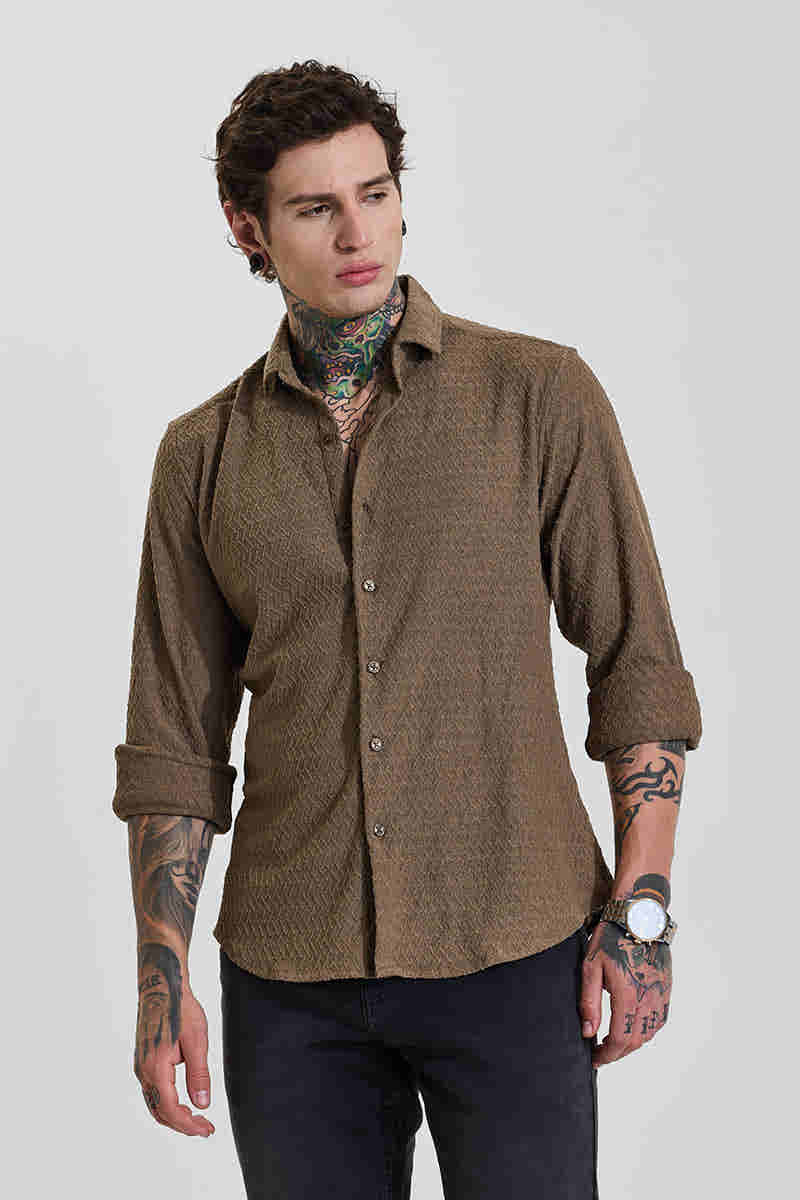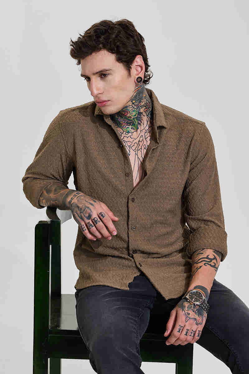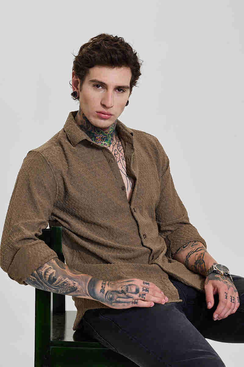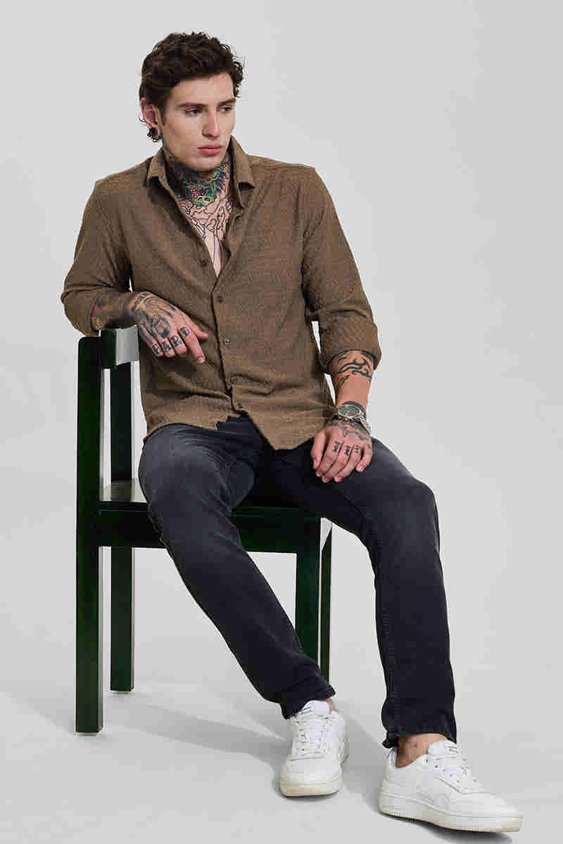 Be the first to review “Dark Brown Textured Slim Fit Shirt” Cancel reply